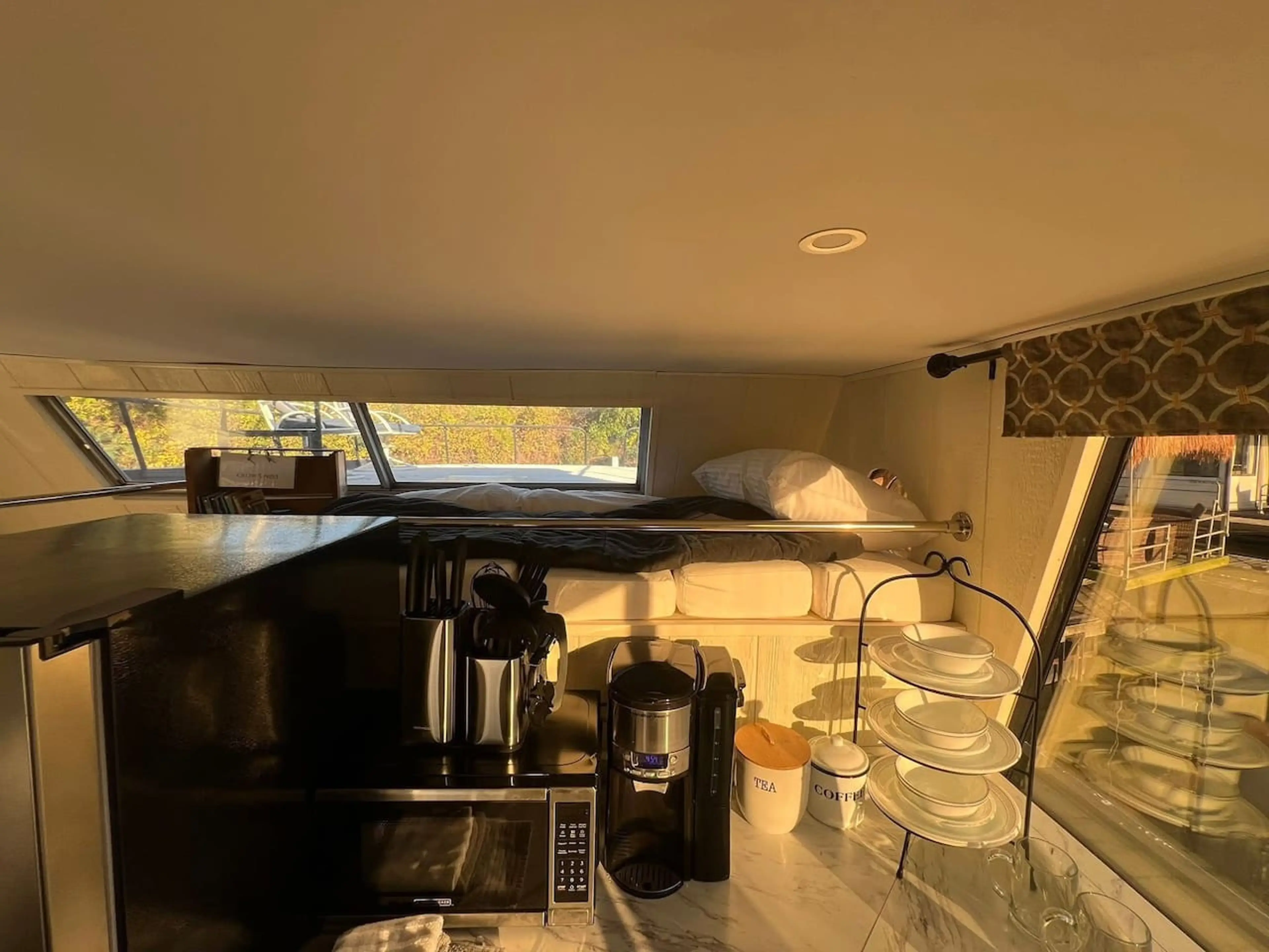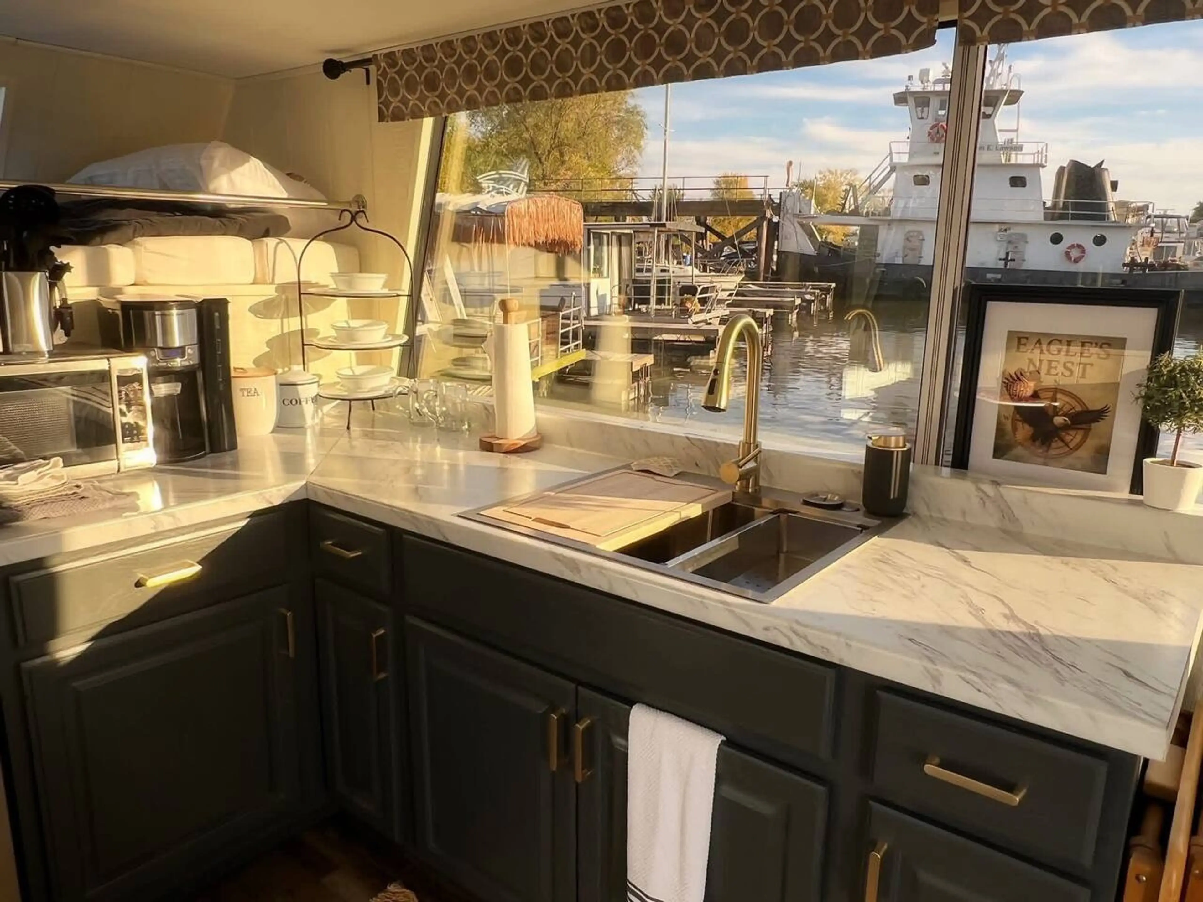 Welcome aboard THE Eagle’s Nest, a charming overnight floating retreat tucked away at Island City Harbor. Perfect for couples, small families, or a peaceful solo escape, this houseboat combines rustic comfort with the magic of river life. Step inside and enjoy a bright, thoughtfully designed interi...